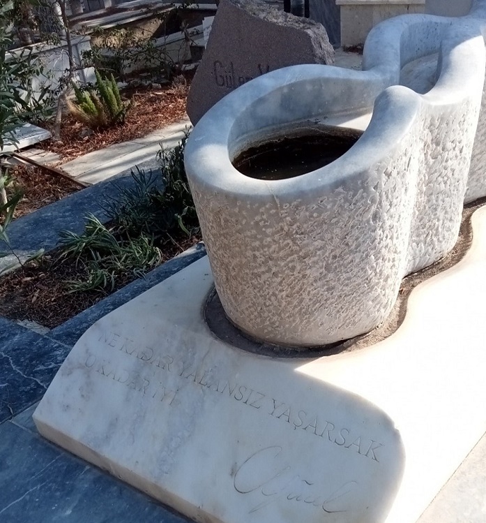 NOT: Mezarlığı ziyaret ettikten sonra bugün artık oteller, lokantalar ve barlarla dolu bir yer haline gelmiş olan eski Datça’yı ve Can Yücel’in buradaki evini de (Can Evi) görmeye gidebilirsiniz. Ziyarete kapalı olan Can Evi’nin kapısı, onun şiirleri ve eşi Güler Yücel’in resimlerinin güneşten solmuş kopyaları ile dolu. Can Yücel ve eşi bu evde 1980’lerin sonundan itibaren oturmaya başlamış. Güler Yücel resim yaparken, kendisi de şiirler yazmış. Can Yücel’in sıkça uğradığı Orhan’ın Yeri’nde ise ‘Can Baba burada’ yazısının altında fotoğraf çektirebilirsiniz.