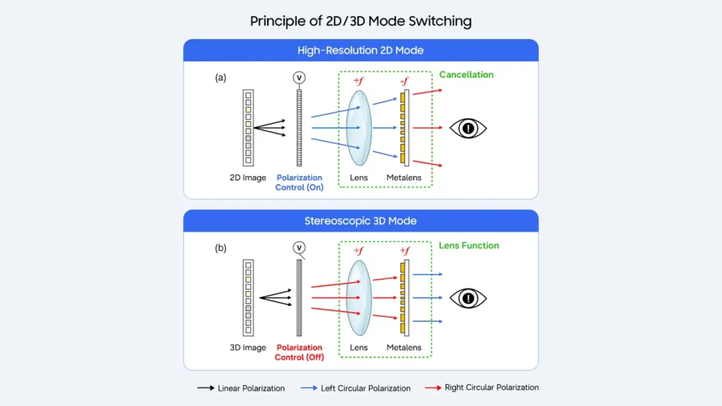 Yeni ekran teknolojisinin en dikkat çekici özelliklerinden biri, kullanım senaryosuna göre modlar arasında geçiş yapabilmesidir. Basit bir voltaj değişikliğiyle merceğin odak özellikleri değiştirilebiliyor. Bu sayede kullanıcılar, metin okurken veya standart içeriklerle çalışırken 2D modunu; oyun oynarken veya film izlerken 3D modunu aktif hale getirebiliyor.